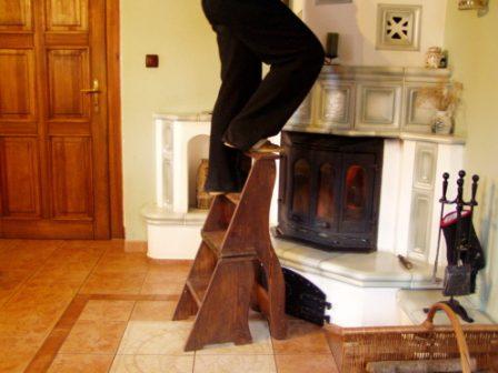 Máte málo místa a nemáte kam uložit schůdky do těžko přístupných skříněk? Máme řešení. Schůdky a židle v jednom. Pověsíte záclony a otočením části schůdků si můžete sednout a vypít kávičku.